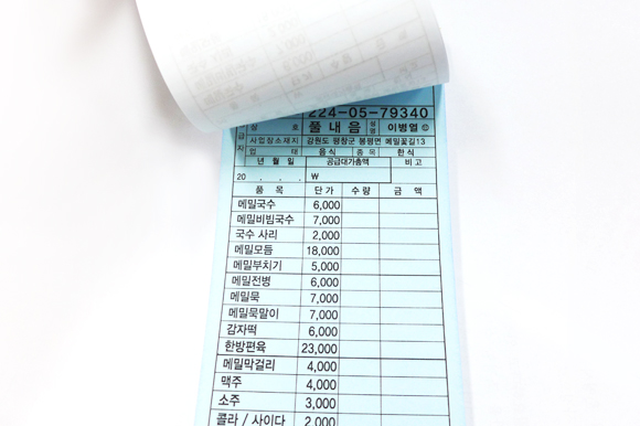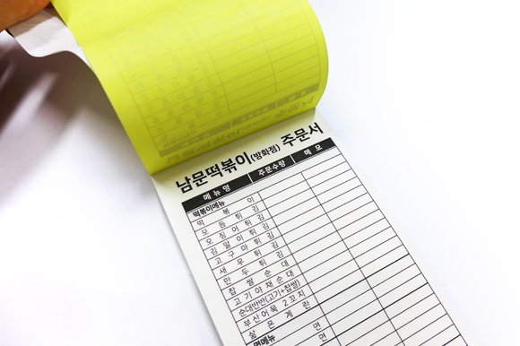 식당에서 주로 사용하는 빌지는 손님들이 원하는 메뉴를 선택해서 주문할 수 있는 미니 형태로 30권부터 소량주문 가능하며, 100매씩 묶음이 되어있어 사용하기 편리합니다.