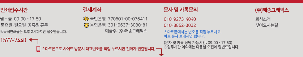 당사 웹사이트의 이미지 및 자체 개발한 웹사이트 구성체계는 주식회사 해송그래픽스에 저작권이 있습니다. 상업목적으로 무단도용 및 복사배포시에는 법적 처벌을 받게됨을 알려드립니다.
